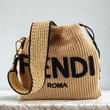 FENDI SACK SMALL WOVEN STRAW BAG IN BEIGE