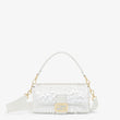 OUR FENDI BAGUETTE BAG IN WHITE SEQUINS AND LEATHER IS CRAFTED FROM HIGH-QUALITY MATERIALS – A BRILLIANT CREATION THAT EMBODIES LUXURY, ELEGANCE, AND THE TIMELESS ICONIC STYLE OF MAISON FENDI.