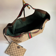 Crafted from GG Supreme canvas in beige and dark brown, with leather details, gold-tone hardware and comfortable handles. It comes with a detachable interior pouch and is finished with the iconic green-red web stripe, adding even more style to the design.