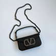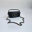 OUR VALENTINO VLOGO CRYSTAL MINI BAG IS CRAFTED FROM HIGH-QUALITY BLACK CALFSKIN – FEATURING A SPARKLING VLOGO EMBLEM EMBELLISHED WITH CRYSTALS.